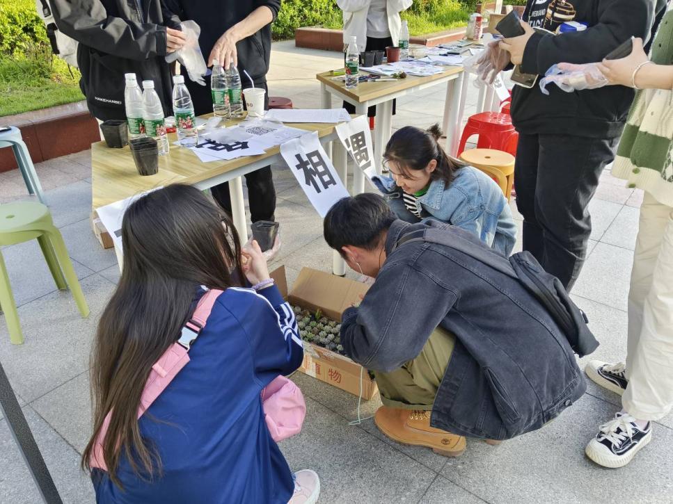 活动当日,同学们通过“莲·相遇”活动领取属于自己的多肉植物,领养过程在工作人员的指导下井然有序的进行。完成领养的同学,将自己的多肉拍照分享到活动群中,大家分享养殖经验,分享以往养殖趣事,群中的氛围也是其乐融融。