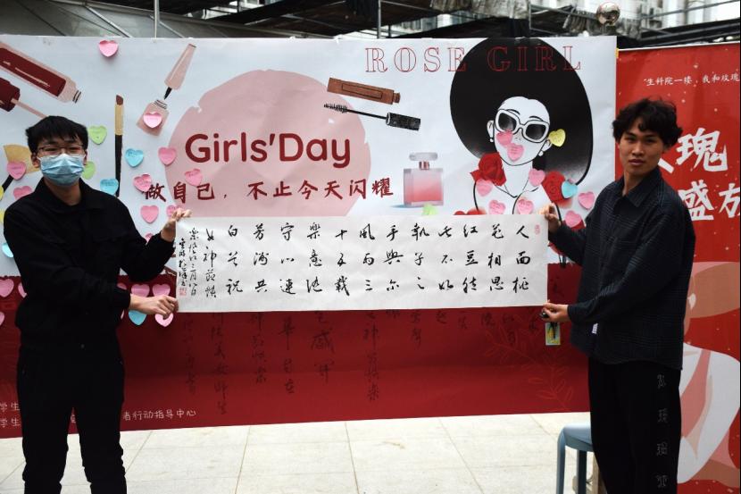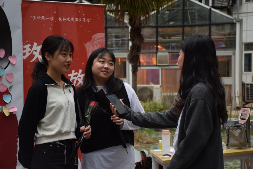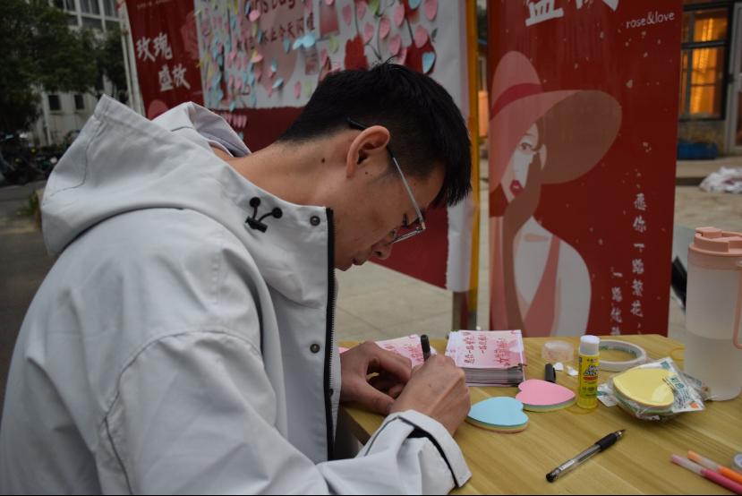 八点钟的钟声响起,女生们陆续来到生科院,在留言板上留下了自己的心愿,男生们也留下了对女生们的祝福。一朵朵娇艳欲滴的玫瑰,就像一位位朝气蓬勃的女生,乘风破浪,散发光芒,扬帆起航。