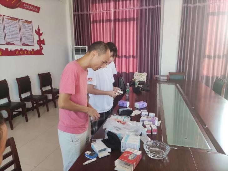 图为正在给村民们测血糖