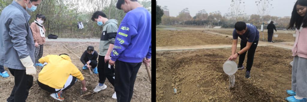 来到劳动教育实践教育责任田,首先由指导老师对大家进行课程内容宣讲和劳动知识铺垫。随后同学们根据安排和分工,带着劳动工具将责任田周围的空地进行了整理清扫,包括耕作松土,取水松土,平整土地等。在劳动中同学们蹲在地上,俯下身子,用锄头一点点挖开坚硬的泥土。看似简单的体力劳动,对于很多从小生长在城市中的学生来说,都是艰难的任务,但却是一次新鲜而难得的体验。