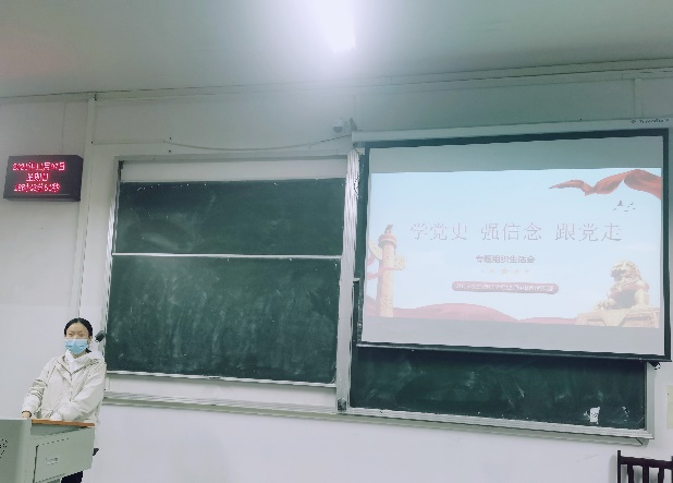 (通讯员:徐佩)为做到学史明理、学史增信、学史崇德、学史力行,学党史、悟思想、办实事、开新局,以昂扬姿态奋力开启全面建设社会主义现代化国家新征程,以优异成绩迎接建党一百周年。2021年117日晚72019级生师B班于教三206开展“学党史,跟党走,强信念”的专题组织生活会,本次活动全体同学共同参与,由团支书张欣怡主持讲解。