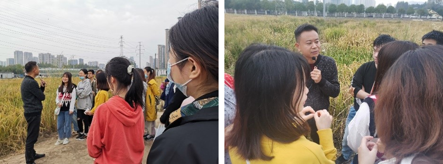 下午3点,周玉玲老师和同学们在图书馆门前集合,一同步行前往水稻育种试验田。一路上大家兴致高涨,气氛活跃。
