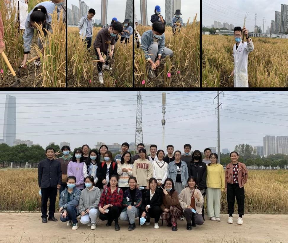 然后,在杨之帆副院长的带领以及水稻团队的研究生、博士生的帮助下,段瑾老师率先尝试用镰刀挖取稻篼,张艳、朱思豹、彭雨生、张志鹏等同学随后也纷纷动手实践。这些稻篼是重要的育种材料,在武汉冬季来临之际,需要将这些材料运至海南基地进行繁育。段瑾老师说道,“希望同学们都能勇于尝试,体验一下劳动的乐趣。挖稻篼,看起来是一项简单的工作,但实际上却很需要技巧和体力。”