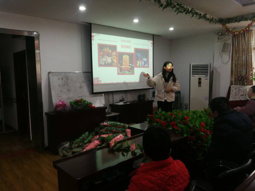 活动伊始,志愿者向学员们展示并讲解了新年主题的PPT,在此PPT展示中,志愿者同大家介绍了自己家乡春节的特色食品,春节活动以及一些特别的习俗。随后,便同学员们一起交流,讨论有关不同地区的春节习俗活动。此次活动与往日与众不同的是,在活动中未能到场的志愿者们为学员们精心录制了一段新年祝福小视频。最后,志愿者们与学员们一起完成了关于春节的图画。而唯一得小遗憾是,由于停水,原定的拔草活动无法进行。