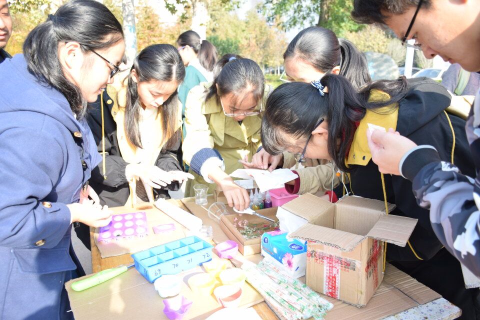 201811249点,英国365集团学生社团联合会协同生物知识普及协会和集邮收藏协会举办的树脂标本制作活动在求索广场举行。