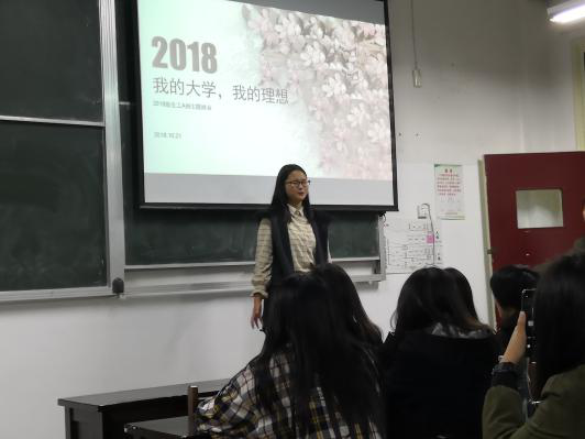 首先,李欣从大学和理想谈起,强调大学生的首要任务就是学习和适应。并从时间管理和自我管理等方面为全班同学提供了多种适应大学的具体方法。接着,李欣从学风建设、活动与宣传、思想与组织三个方面分享了班级建设的建议和意见,号召大家完成日常作业和实践,积极参加早晚自习,培养优良班风,同时提醒班委要加大对班级活动的宣传力度。最后,李欣播放超级演说家”节目冠军得主刘媛媛的“寒门难出贵子”的演讲视频,借用演讲中所表达的独立梦想勇气坚韧的正能量激励大家畅所欲言,在讨论,熊志强、刘奥运、张志鹏等班级同学一一分享了自己考研深造、与人为善、立志科研等理想和信念同时班主任许良发也到场为大家一一解答各种问题。