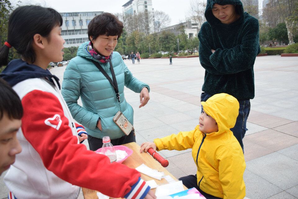 活动由两部分组成:首先由志愿者为前来观看的同学介绍关于卫生纸的知识,然后进行两个科普小实验,用事实说明卫生纸之间的差别。首先,志愿者们与参观的同学进行交谈,了解他们对于卫生纸的认知。针对他们或多或少的不足,志愿者们再为他们丰富不知道的隐患。接下来对比优质卫生纸和劣质卫生纸来进行触摸实验,了解两者之间触感的差距。优质面巾纸明显比劣质卫生纸更加顺滑,也更亲肤。而之后的浸水实验更受瞩目,不少小孩纷纷围着志愿者观看,只见,劣质卫生纸遇水则烂,而好的纯木浆卫生纸则具有一定的韧性,遇水也不易破损。参与者经过如此“言传身教”,对卫生纸知识有了更加全面的认知。