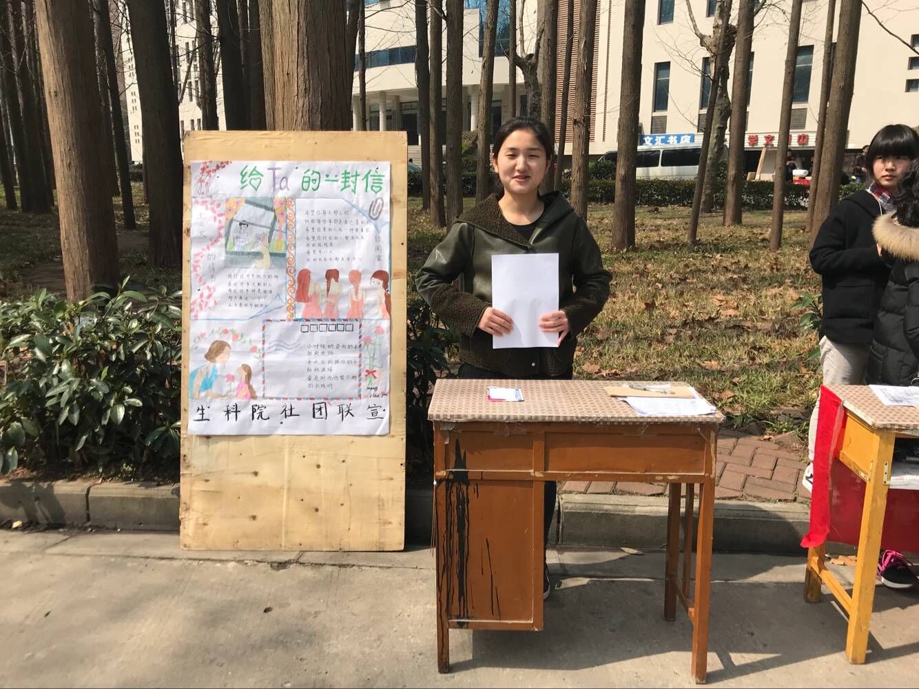 此次活动的目的在于为同学们提供一个方便的平台,说出对Ta深藏已久的话。“Ta可以是在家的父母,也可以是你心中的那个Ta”,宣传板上的话旨在号召同学们能够抽出时间静下心来写一些文字诉说心情,用纯粹的感情去体会、去表达,用一颗质朴热切的心去感悟、去倾诉。本次活动分为两个部分,一是同学们在36日至38日在嘉慧园以及大学生活动中心领信封给Ta写信;二是在311日前在嘉慧园以及大学生活动中心收集信件,由专门人员粘贴邮票,现场密封,将信件按照地点进行分类并投入信箱中。活动期间,同学们纷纷前来投信。那一封封载着深情的信件将于311日后发出,一张薄薄纸联系着亲情、爱情,有理想畅谈,亦有心事诉说。