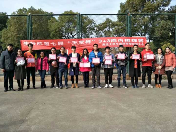 124日,生科院第七届“天空杯”3+3院内排球赛在后街排球场开赛,于128日圆满结束,最终2017生工B2015生试分别夺得甲乙组冠军。