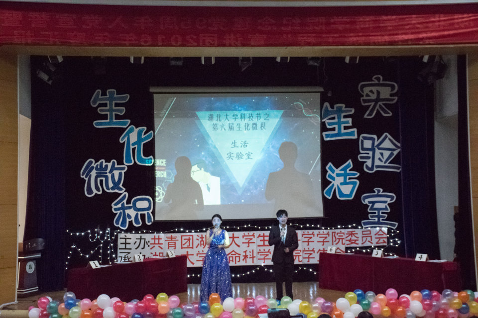 此次比赛总共分为3部分,第一部分:团队介绍暨作答题目,每支队伍由主持人介绍队伍名称引领入场,随后进行生物知识题目作答。第二部分:名词解释,每支队伍对给定名词进行解释。第三部分:实验表演,6支队伍分别进行自己准备的实验。
