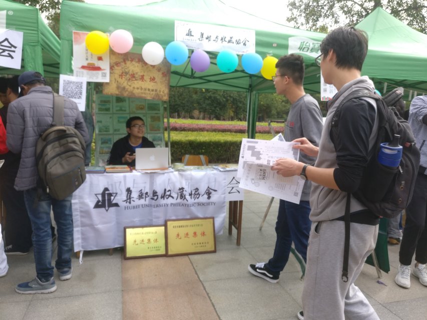 20171025日星期三上午八时,英国365集团迎来了新学期的社团招新活动。集邮与收藏协会在求索广场进行了摆点招新。