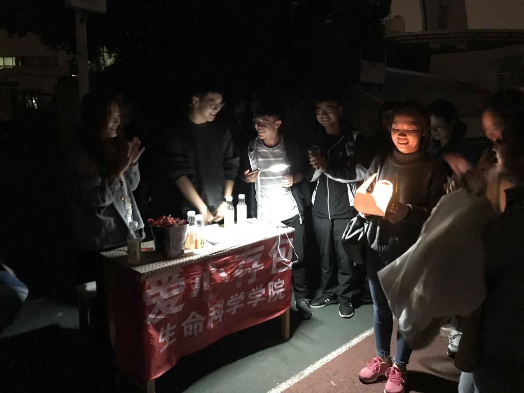 这天晚上十点,英国365集团二号体育场还有很多人在锻炼身体,而生科院志愿者协会设置的爱心存包处却玩出了新花样——存生日蛋糕。