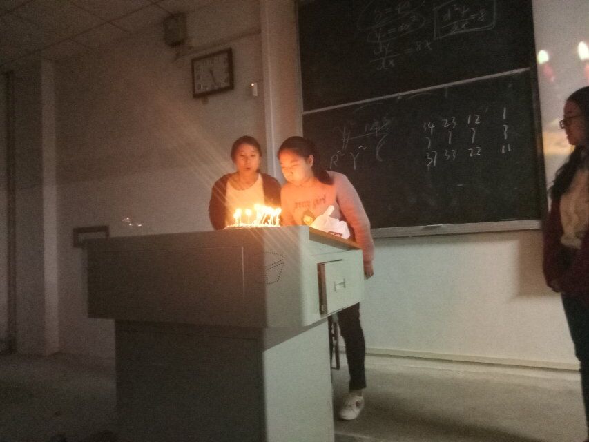 班会上,两名小寿星亲自为大家切蛋糕,班委为同学们分发饮料,零食,蛋糕。小寿星并作出大学愿望,吹灭蜡烛。全班同学热烈鼓掌。班会上班长讲述了大学的意义,组织班里同学就如何过好大学四年发表了个人见解。一位同学说道:“大学是步入社会的跳板,我们要在大学里学会如何为人处世,控制好自己的情绪,做好未来二三十年的人生规划。”在班会的最后,班委组织了同学们进行“你画我猜”的游戏。全场气氛热烈,掌声不断。