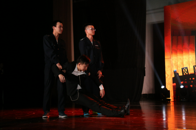 这是2017年6月4日湖大生科院毕业晚会中一个名为《生科的名义》的节目,由15生物技术班于海洋、波等人出演。