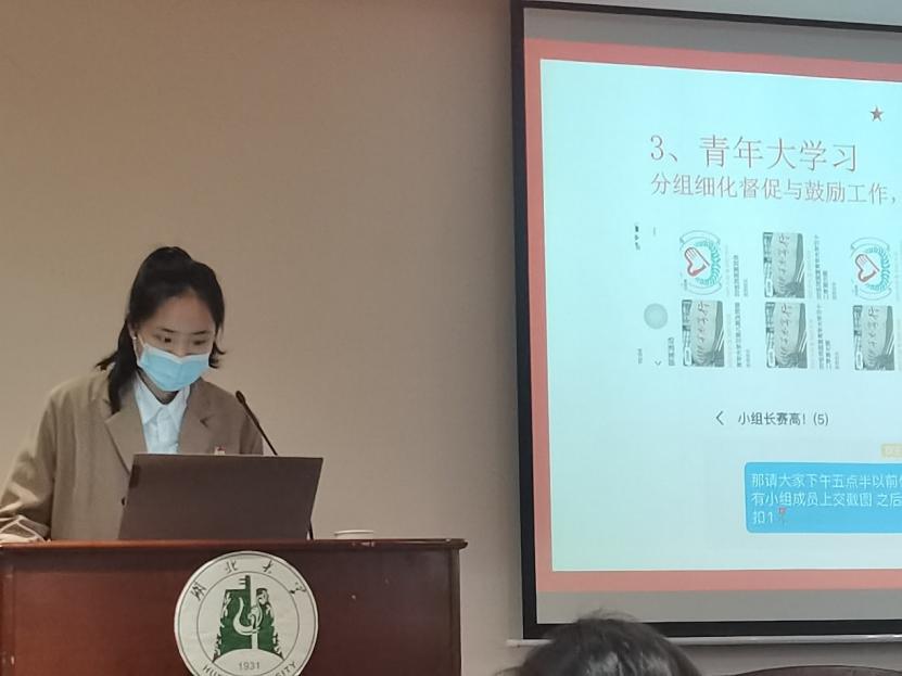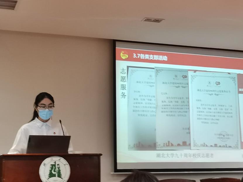 各支部都在思想建设组织建设班级活动学风建设宣传活动等诸多方面进行了全面系统的汇报展示,其中 19药学卓越团支部采用更为深刻的视频形式展现风采,邓雪莹表示:“坚定跟党走、积极向上、团结友爱、坚韧奋斗是我支部的奋斗宗旨,视频里的每个瞬间都会是我们今后生活上的基石,一代人有一代人的长征”。