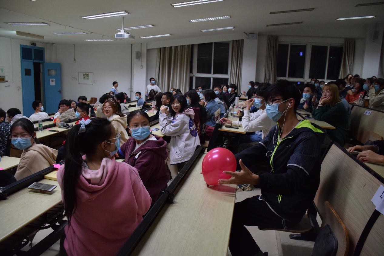 在欢快的音乐中,活动伴随热身小游戏“击鼓传花”的开始而展开,在惩罚游戏“答非所问”“一反常态”中同学们逐渐融入活动愉悦的氛围中,参与的同学们同样获得了一些小礼品。
