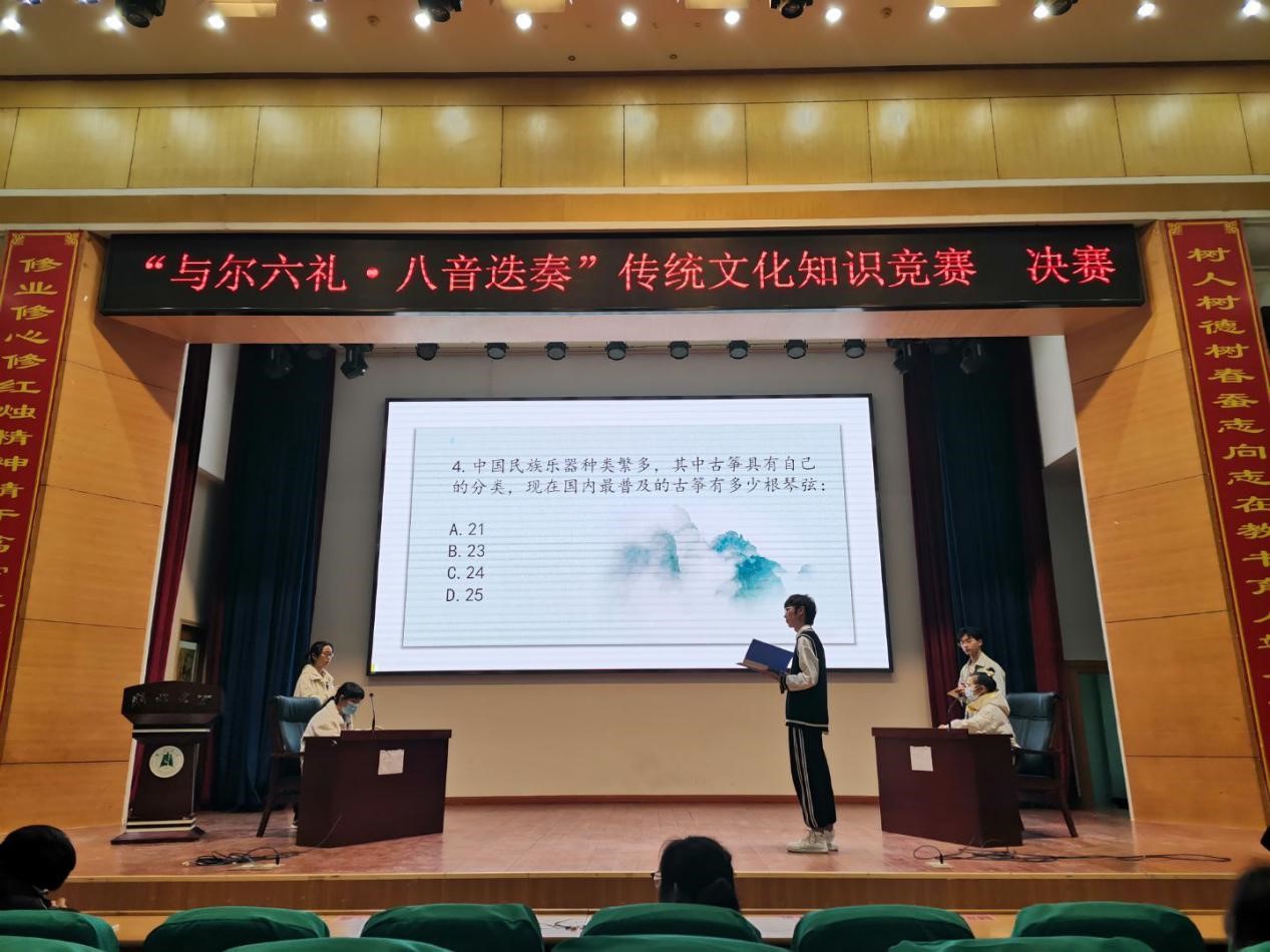 本次传统知识文化竞赛的初赛,在题型上主要以选择和填空为主,共一百道题,旨在让同学们了解我国的“乐”和“礼”两方面的知识。而复赛的题型更加多变,有选择、填空、看图识乐器和音频题等,旨在让参赛的同学们更加深入的了解传统文化知识。决赛为现场问答题,经过激烈比拼,角逐出了一、二、三等奖,并在比赛结束后为获胜者颁发了奖品和证书。