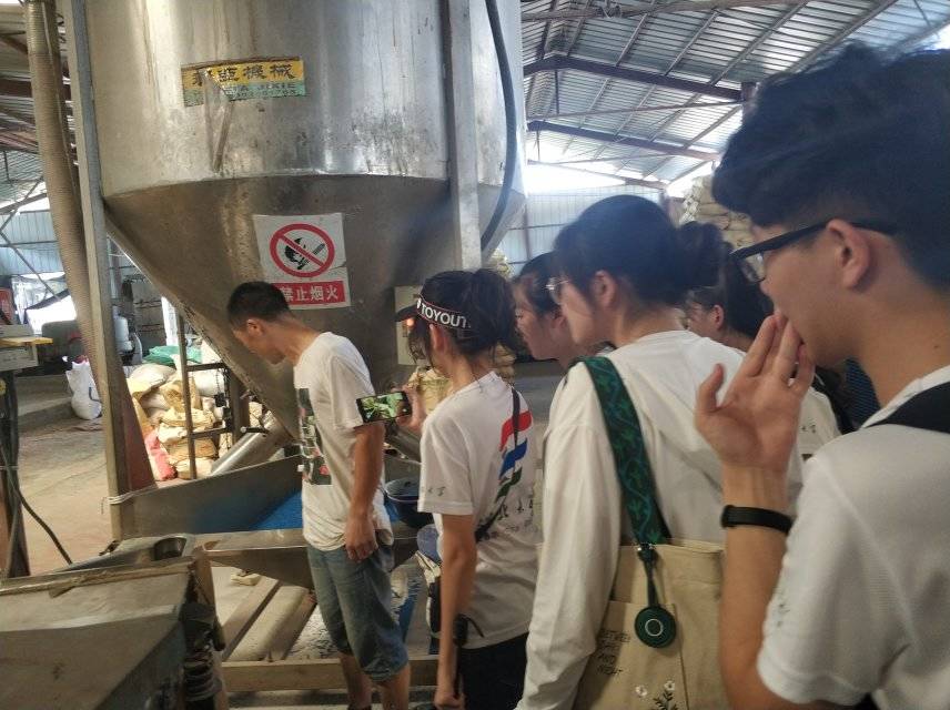 在程师傅的耐心讲解下,队员们了解到,现在的塑料回收大多是不改变原先本身的塑料材质,只是改变形状及颜色,其对生物质塑料更是知之甚少。可见生物质塑料暂时还没有进入产业化阶段,尚处于上游研发阶段。