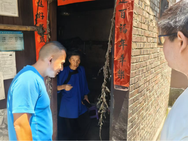 ▲团队成员同龙书记走访村民余灿凯 供图