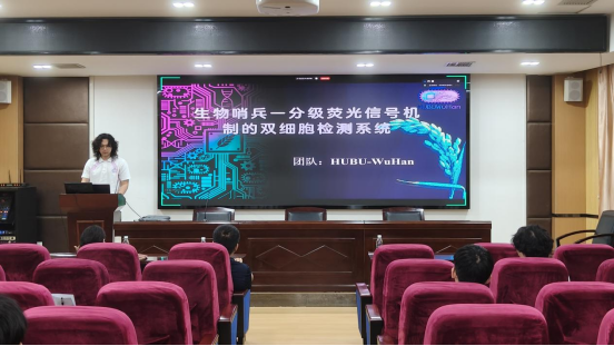 会上,HUBU-China团队介绍了“一酶多效”项目,聚焦玉米饲料霉菌污染问题,提出创新解决方案--开发霉菌毒素降解酶冻干菌粉,借助“干燥剂模型”在受潮时激活酶活,有效抑制霉菌生长并降解多种霉菌毒素。HUBU-WuHan团队汇报了“双细胞检测系统”项目,针对饮用水砷污染问题,团队创新设计双细胞生物传感器,以实现低成本、高灵敏度的砷污染检测。