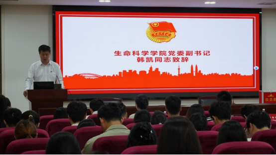 院党委副书记韩凯首先致辞。他指出,2025年是全面完成“十四五”规划目标任务的关键一年,青年学生应深刻领会并积极践行党中央关于青年工作的重要指示精神,特别是关于科技创新和人才培养的最新部署要求,将追求卓越、担当实干的精神风貌融入学习科研和各项工作中。同时,提出三点要求:一是青年学生要坚定信仰,持续加强理论武装;二是学生干部要恪尽职守,时刻铭记责任宗旨;三是学生组织要持续深化改革创新。希望新一届团学组织能把握时代脉搏,带领学院全体学生在广阔天地里书写美好篇章。