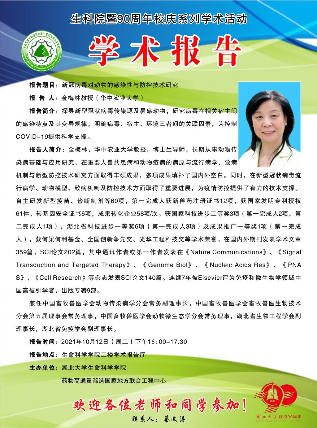 上一条:学术报告:创新生物催化与细胞工厂技术实现绿色生物制造 下一条:学术报告:冠状病毒跨种传播机制及中和抗体药物研究