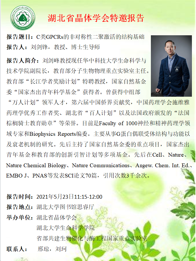 学术报告:C类GPCRs的非对称性二聚激活的结构基础