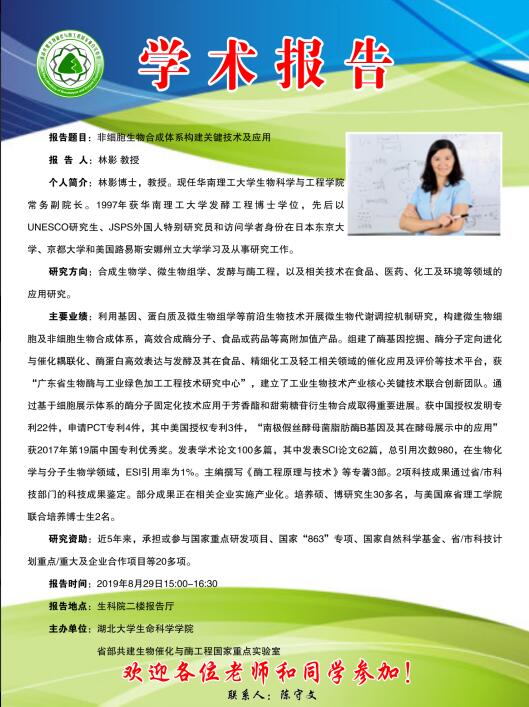 学术报告:非细胞生物合成体系构建关键技术及应用