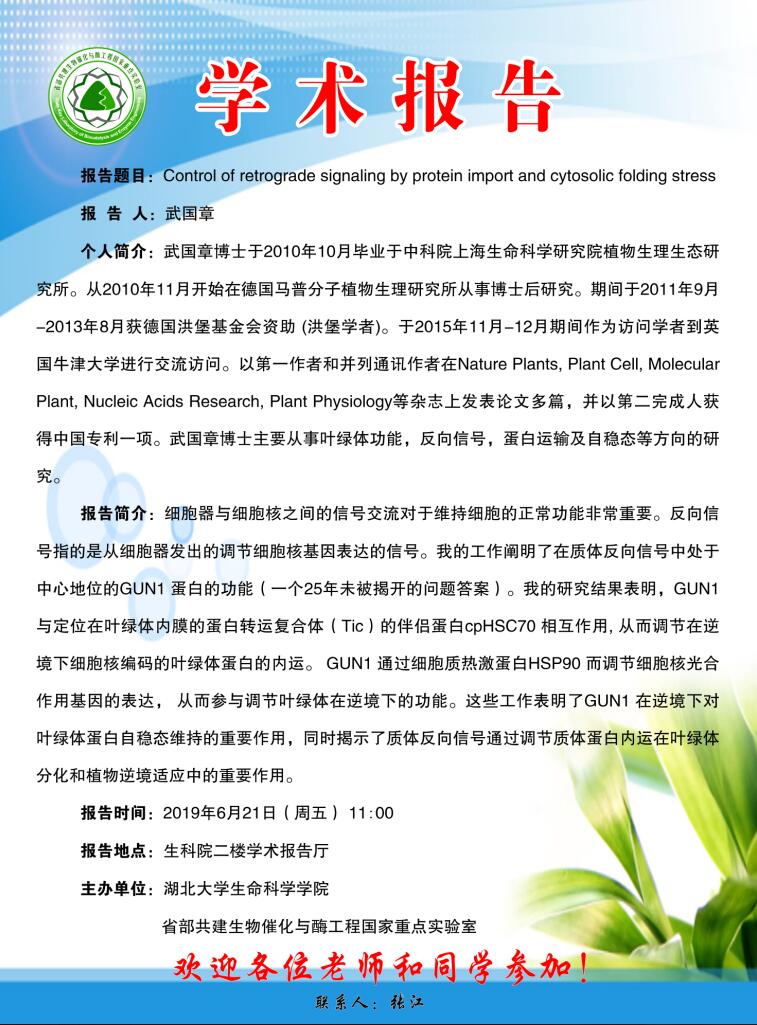 学术报告:Control of retrograde signaling by protein import and cytosolic folding stress