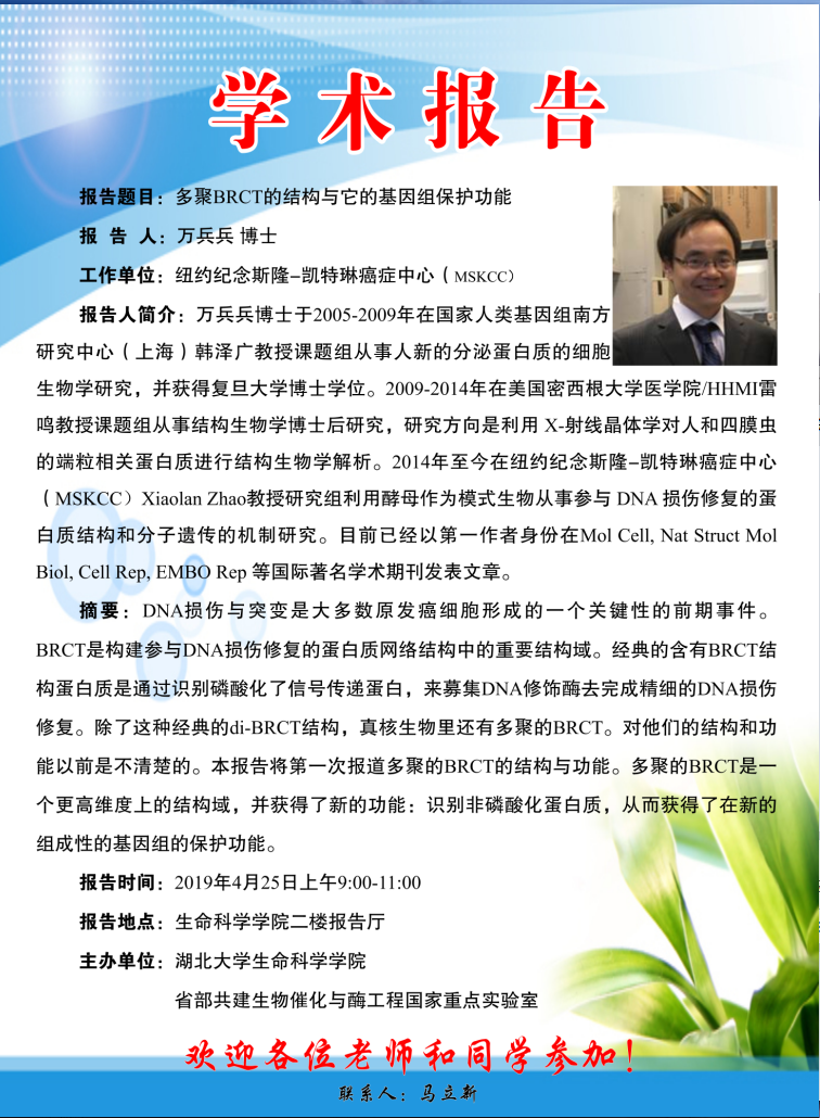 学术报告:多聚BRCT的结构与它的基因组保护功能