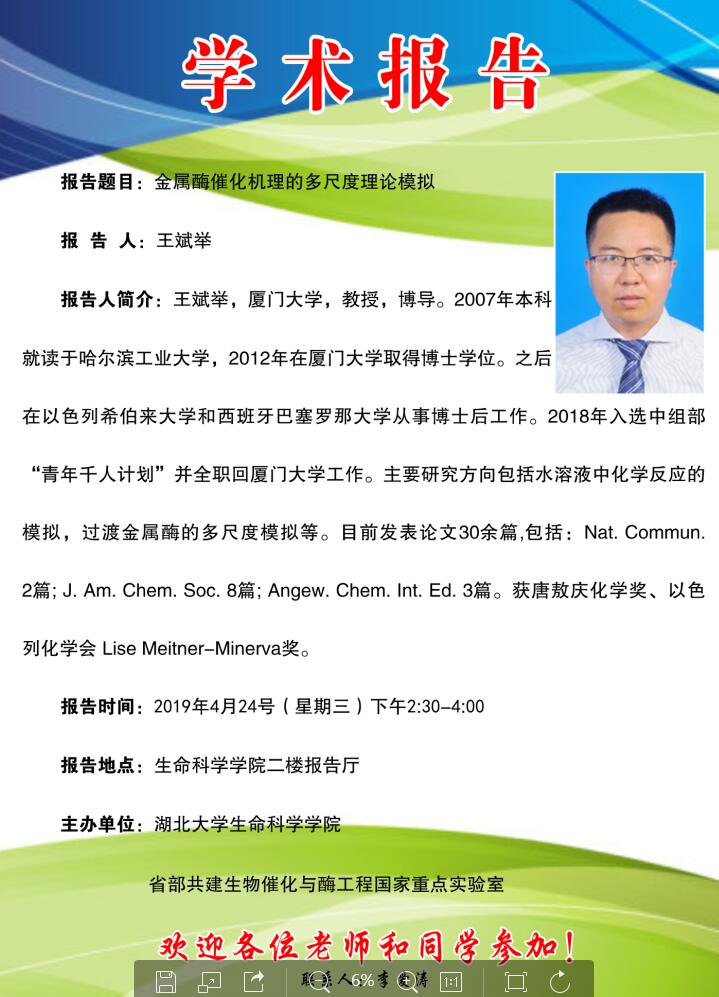学术报告:金属酶催化机理的多尺寸理论模拟