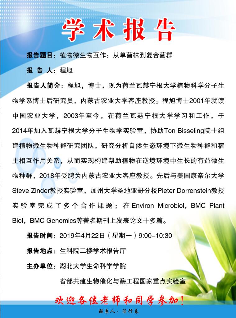 学术报告:植物微生物互作:从单菌株到复合菌群