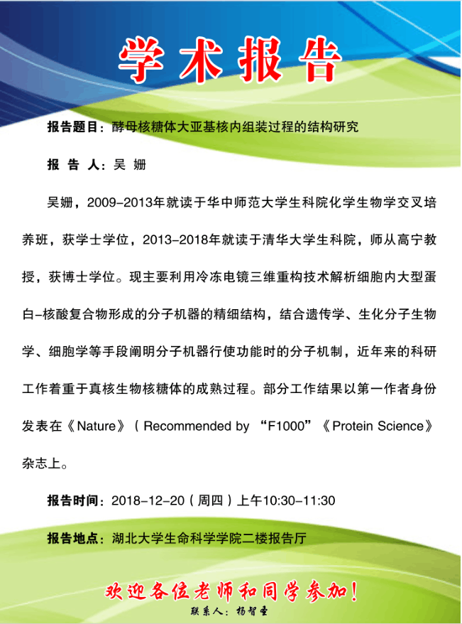 学术报告:酵母核糖体大亚基核内组装过程的结构研究