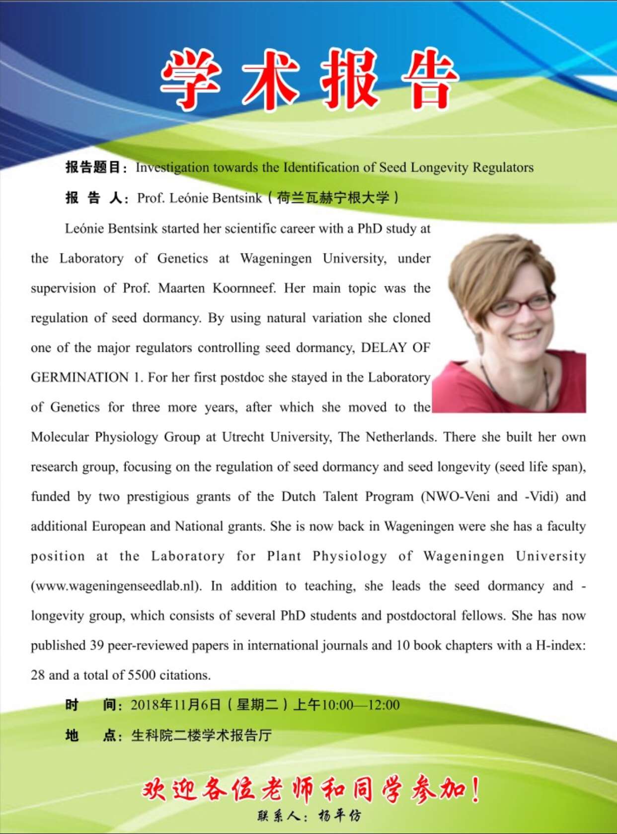 学术报告:Investigation towards the Identification of Seed Longevity Regulators