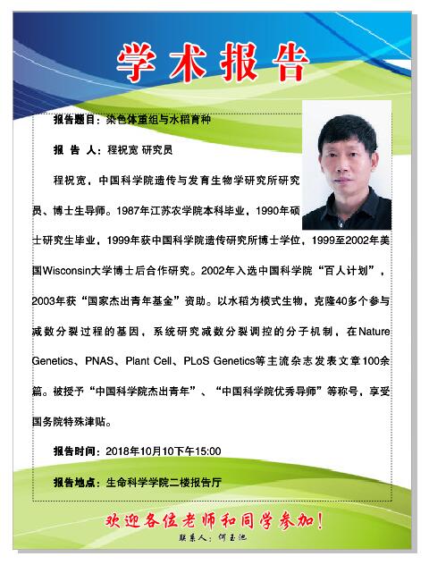 上一条:学术报告:Investigation towards the Identification of Seed Longevity Regulators 下一条:学术报告:金柑转录因子FcWRKY40抗盐功能鉴定及作用机制解析