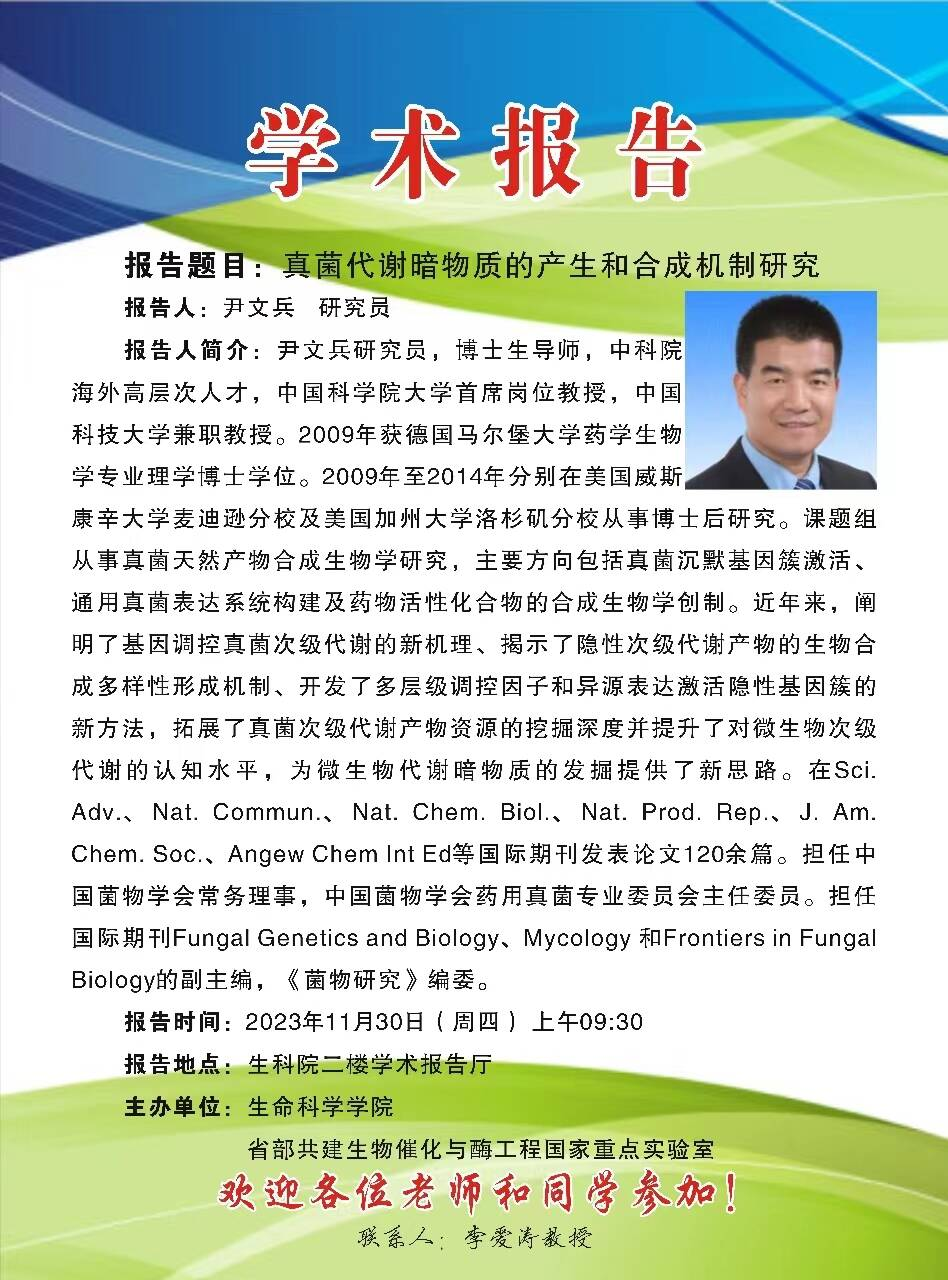 学术报告:真菌代谢暗物质的产生和合成机制研究