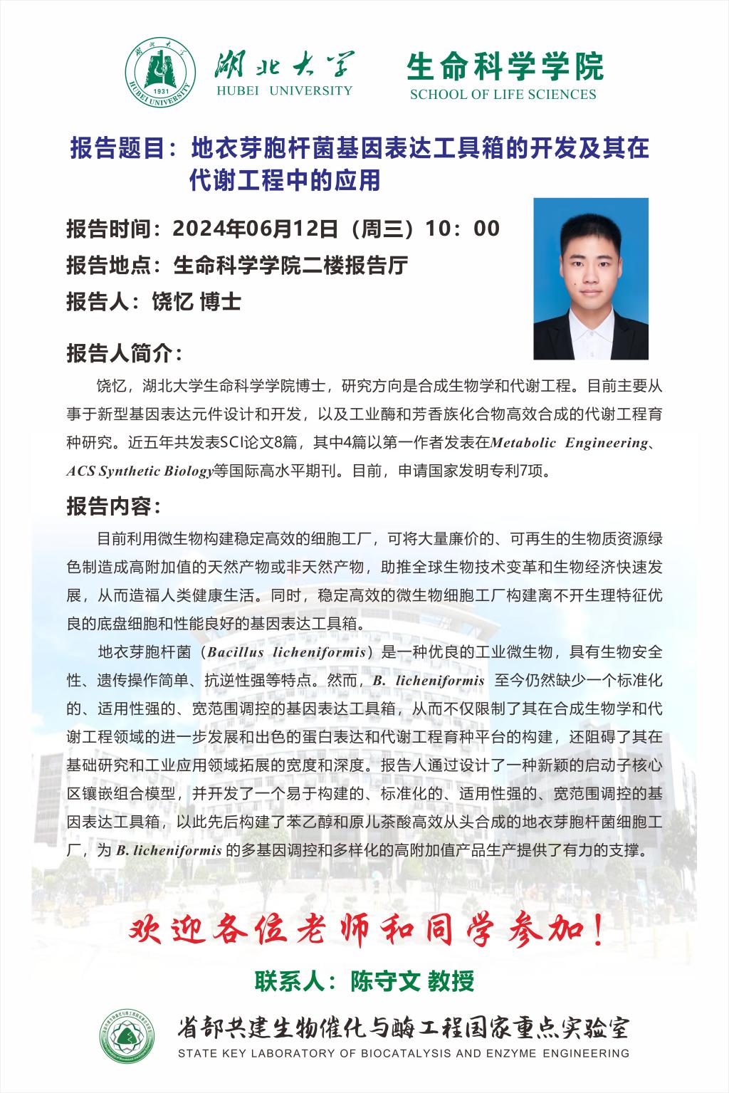 学术报告:地衣芽胞杆菌基因表达工具箱的开发及其在代谢工程中的应用