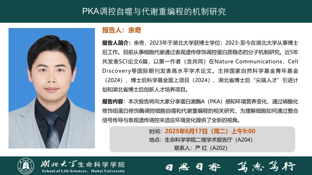 学术报告:PKA调控自噬与代谢重编程的机制研究