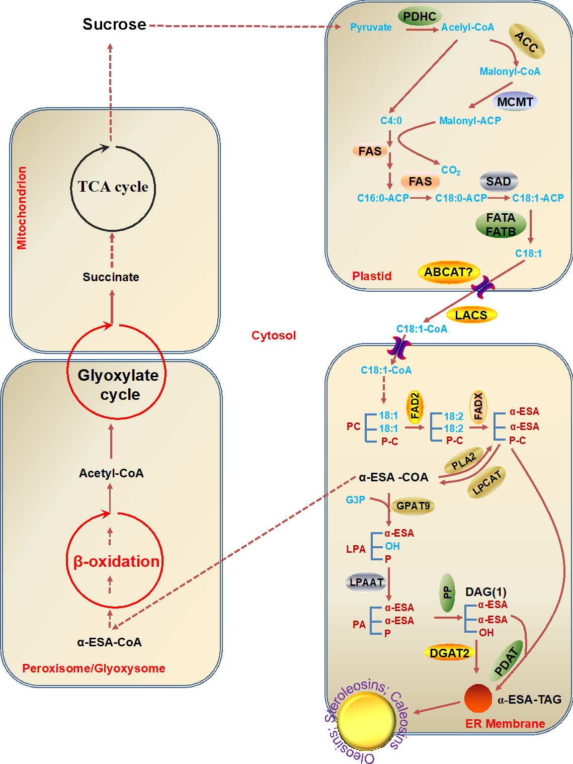 (1)通过基因组和转录组测序明确了油桐种子油脂合成的通路,并揭示了脂肪酸β氧化的激活是桐酸富集的关键因子之一(Plant Cell Physiol. 59(10): 1990–2003 (2018))。