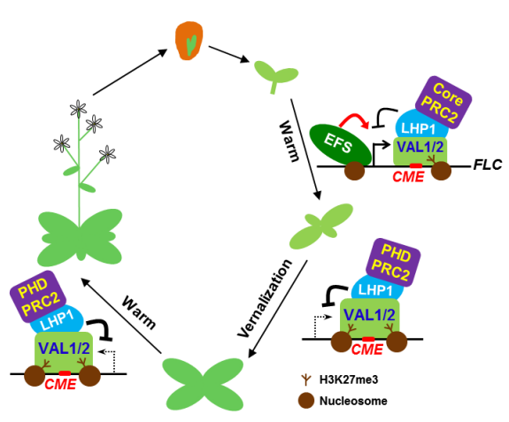 16. Yuan Wenya, Luo Xiao, Li Zicong, Yang Wannian, Wang Yizhong, Liu Rui, Du Jiamu, He Yuehui* (2016). A cis cold memory element and a transepigenome reader mediate Polycomb silencing of FLC by vernalization in Arabidopsis. Nature Genetics, 48, 1527–1534.