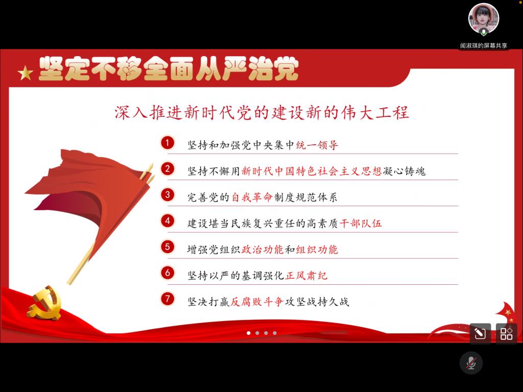 在第一部分,闻淑琪带领各位党员学习了习近平总书记在二十大上提出的重要精神,认真学习了有关“三个务必、三件大事、五大原则、四个要点”等主要内容,深刻总结了中国共产党和中国人民团结奋斗赢得的伟大历史性胜利,同时了解到我国再次完善了中国特色社会主义法律体系,深入推进新时代党的建设新的伟大工程。