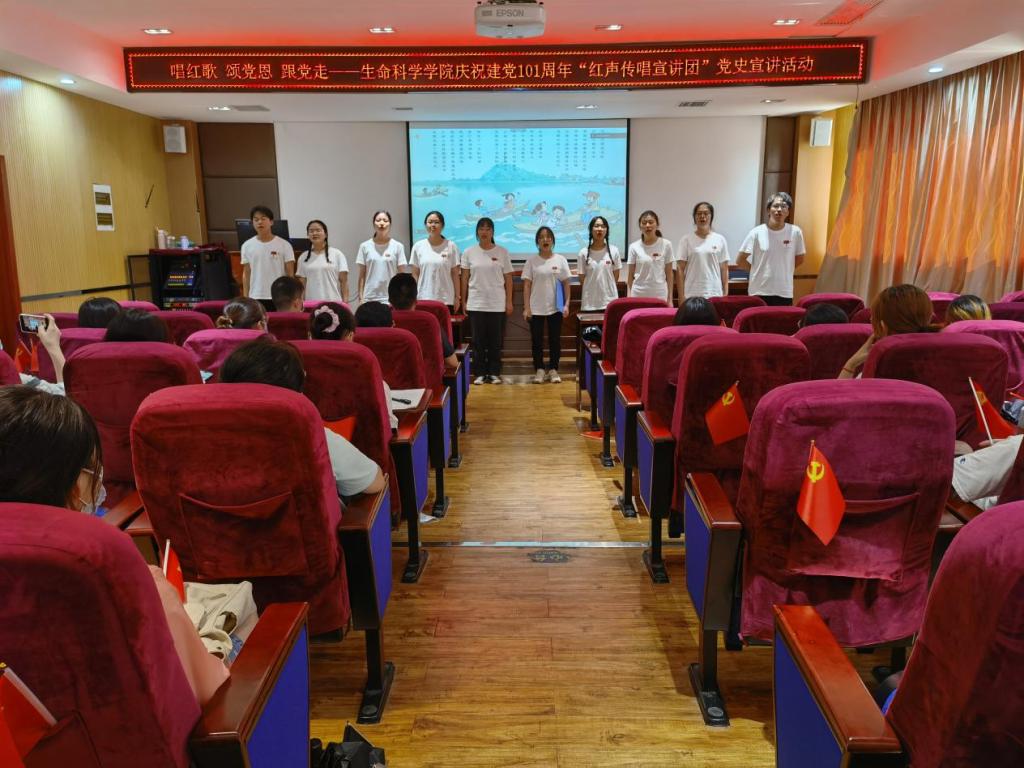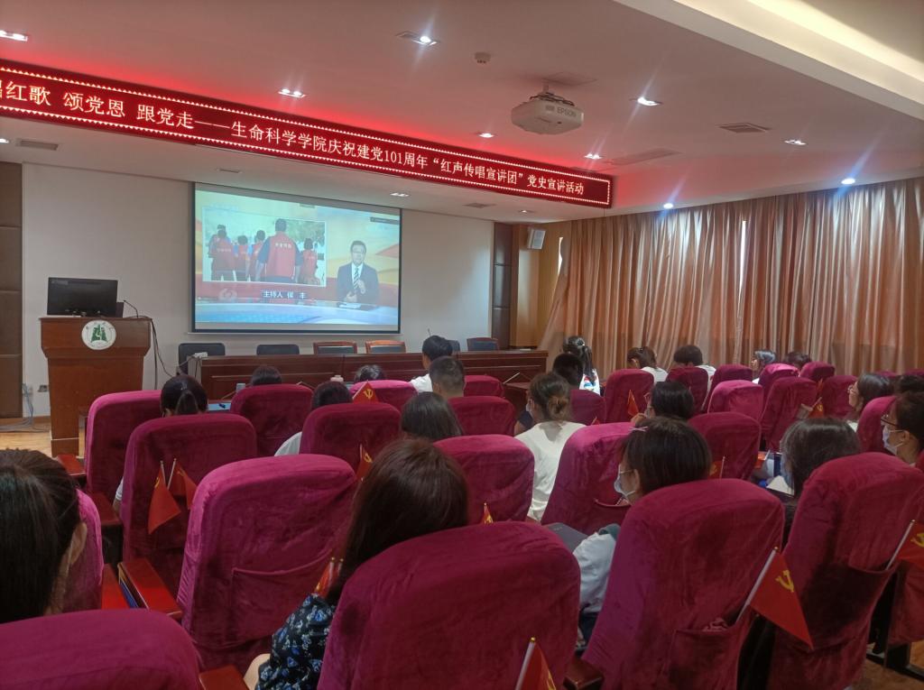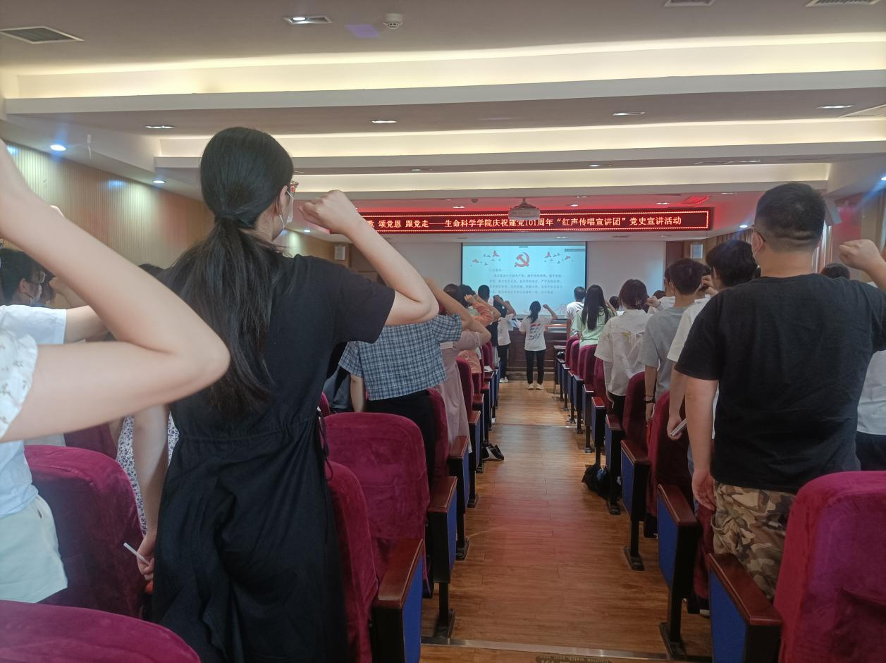 第一个环节,英国365上市集团“红声传唱”党史宣讲社会实践团队用“红歌传唱”的形式和全体预备党员们共同回顾百年党史的峥嵘岁月,重温革命前辈不畏艰难、攻坚克难的“战斗史诗”,品读革命精神里的“甘苦味”。《歌唱祖国》、《强军战歌》、《七子之歌》、《少年》等一曲曲歌声回荡在报告厅,现场的预备党员们不时挥舞起手中的手摇旗,现场气氛热烈,反响强烈。