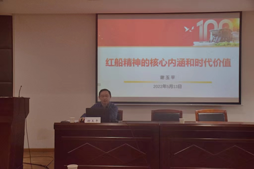 在首场辅导报告中,谢玉平书记从电影《1921》的节选片段引入,围绕“红船精神的核心内涵和时代价值”主题,带领大家从“红船精神”的核心精神、“红船精神”的历史地位、 “红船精神”与“建党精神”的逻辑关系及“红船精神”的时代价值四个方面学习领会“红船精神”。引导学员们把“红船精神”理解为为开天辟地、敢为人先的首创精神,坚定理想、百折不挠的奋斗精神,立党为公、忠诚为民的奉献精神 。(摄影:罗琪琪 审核:张精文 李鑫泽)