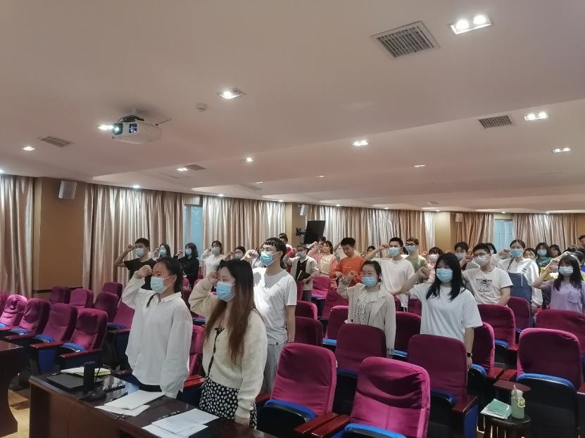 会议第一项:副书记姜小满介绍本次党日活动主要内容。首先是全体党员重温入党誓词。姜小满同志带领全体同志宣读入党誓词,每位党员激情澎湃,入党誓词铿锵有力,响彻会场。
