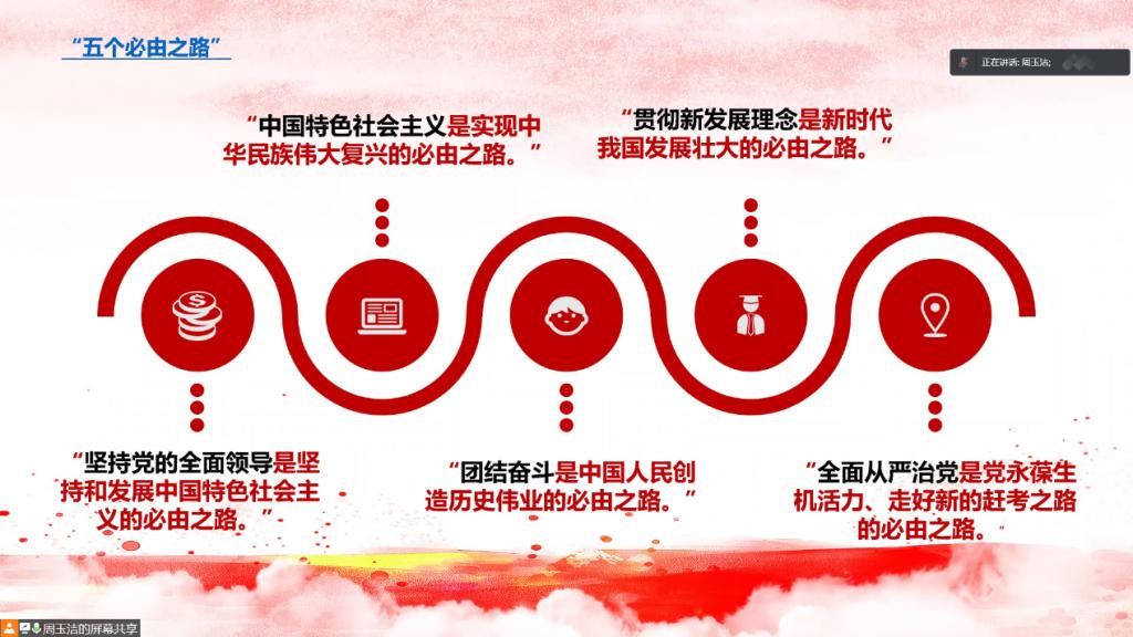 随后,支部党员共同学习了习近平总书记在今年两会上的两个重要论述,学习了解包括坚持党的全面领导、中国特色社会主义、团结奋斗、贯彻新发展理念、全面从严治党在内的五条必由之路和习近平总书记对我国发展仍具有诸多战略性的有利条件作出的的五条精辟总结,深刻体会到中国答卷背后的成功密码,感受到深沉的历史自觉和强烈的历史担当。
