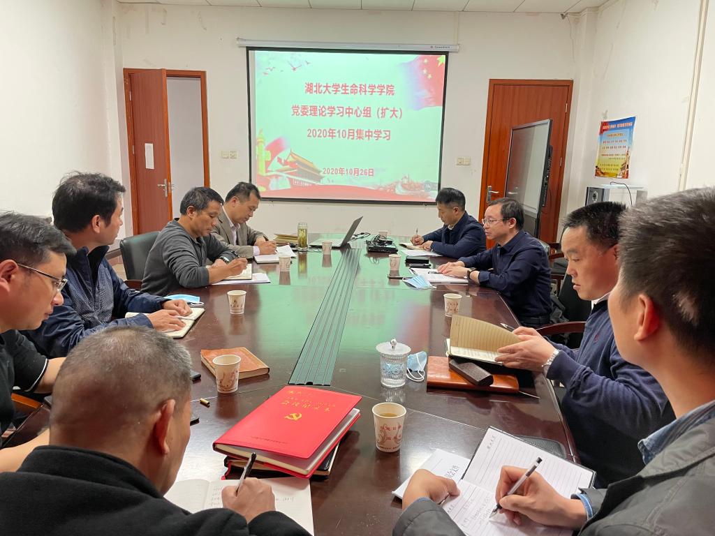 1026日下午,学院中心组成员按照《关于英国365集团202010月理论学习安排的通知》精神,在学院二楼会议室集中开展学习研讨。学院党委书记谢玉平带头领学,领导班子成员、学院党办成员全体参加。