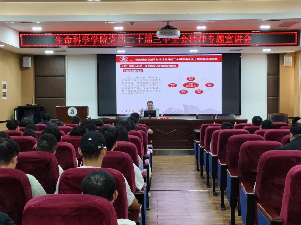 宋韧从党的二十届三中全会概况、深刻领会习近平总书记在党的二十届三中全会上的重要讲话精神、全面准确理解《决定》提出的进一步全面深化改革重大举措、关于深化高等教育综合改革、全力以赴抓好全会精神贯彻落实等五个方面,阐明全会的重大意义和进一步全面深化改革、推进中国式现代化的会议主题,并结合高等学校工作实际以及学校生物学一流学科建设情况,进行深入浅出的讲解。宣讲立意高远,内容丰富,既有理论高度,又有实践深度