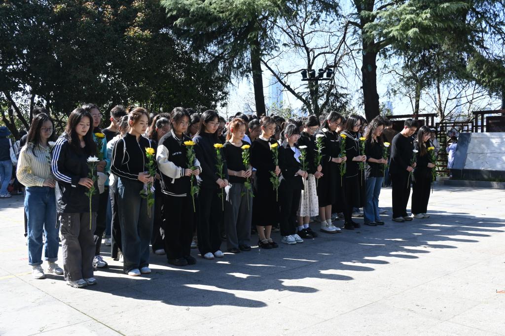 活动由学院党务中心学生负责人胡丽娟主持。在庄严肃穆的纪念碑前,全体党员整齐列队,集体默哀一分钟,表达对向警予烈士的深切哀悼和敬意。随后,党员向烈士敬献花篮和鲜花。