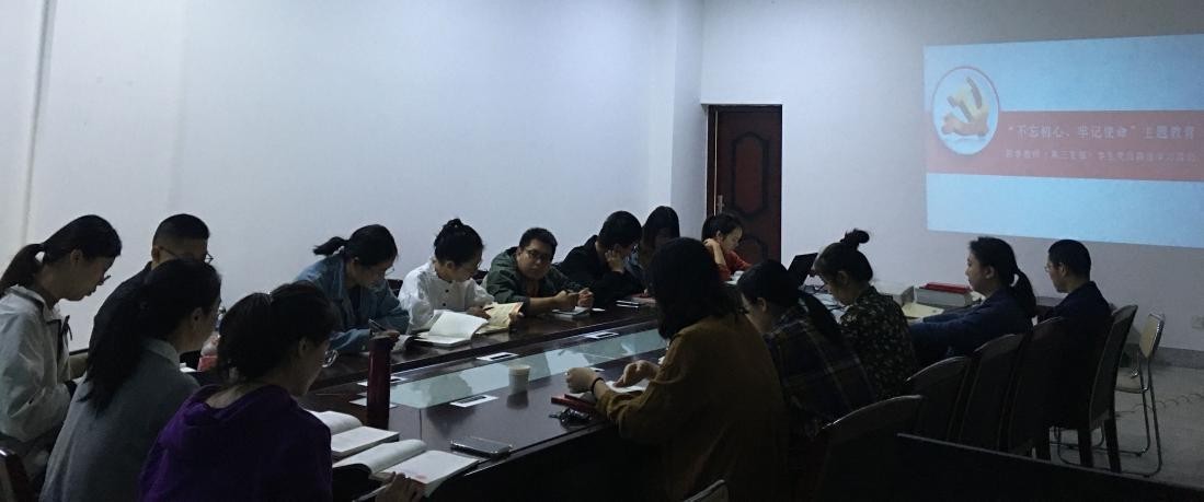 会议伊始,蔡文涛老师首先向与会党员传达了学校主题教育学习中校党委书记尚钢同志 提出的“四个结合”的要求及学院 10 9 日召开的党务工作会议的精神。紧接着,蔡文涛老师结合本支部支委会讨论结果,对本支部近期要举行的主题教育相关活动做出了详细安 排。随后,支部开展了以诵读及讨论《习近平关于“不忘初心、牢记使命”论述摘编》为主 要形式的学习活动。活动中党员们踊跃发表自己的学习体会。任家强和段瑾老师分别谈到在 生活和工作的点点滴滴中要强化共和国的红色理念,牢记这一抹红色是革命前辈用鲜血换来 的,要坚决继承并将之发扬光大。部分学生党员也结合自己的学习和科研实践谈到了如何将 “不忘初心、牢记使命”主题教育落到实处。