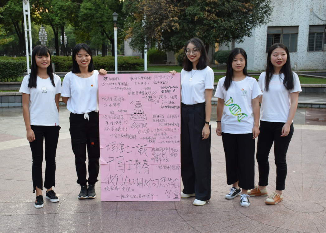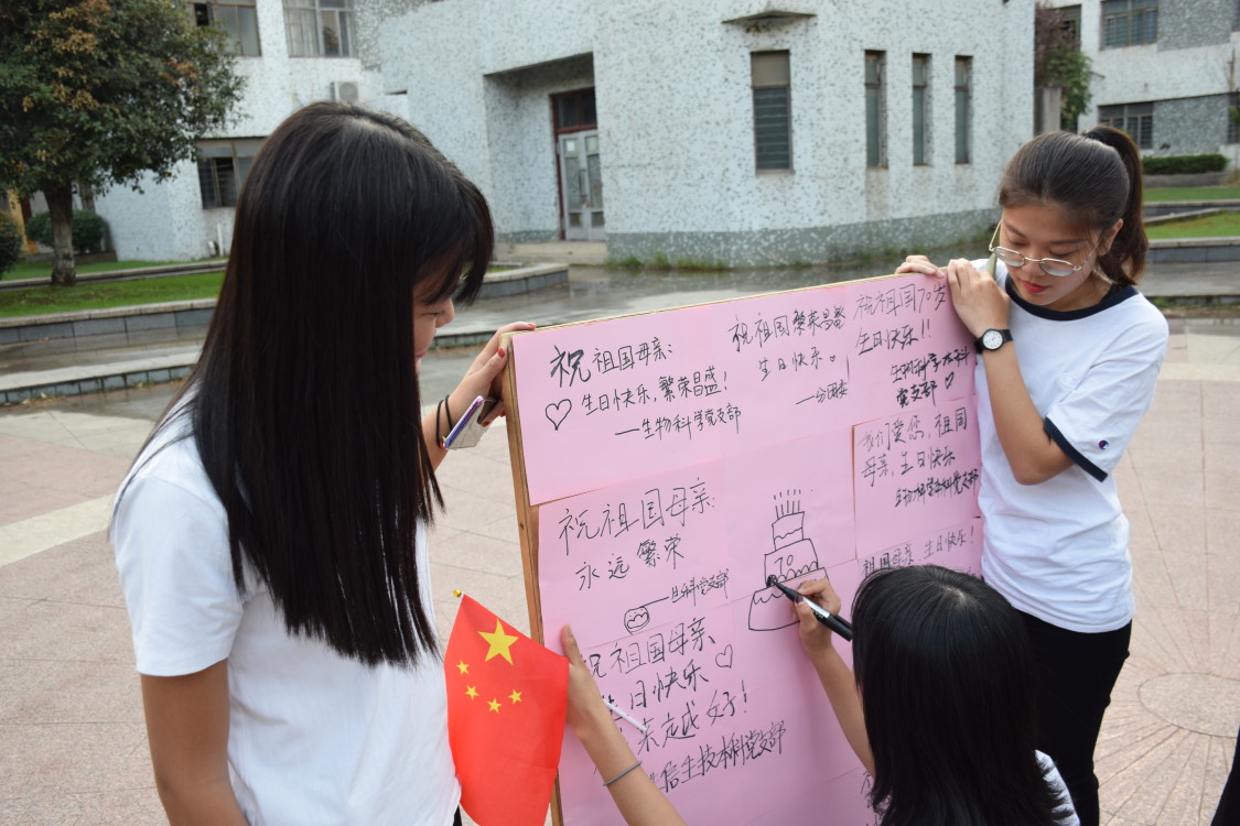 在合唱过后,学生党员为中华人民共和国成立70周年写下祝福语。“祝祖国母亲永远繁荣昌盛”,“祝祖国之树永远屹立不倒,生命之树繁华永驻”,“辉煌七十载,中国正青春”等祝福语书写着同学们对祖国母亲最直白的告白和最幸福的祝福。